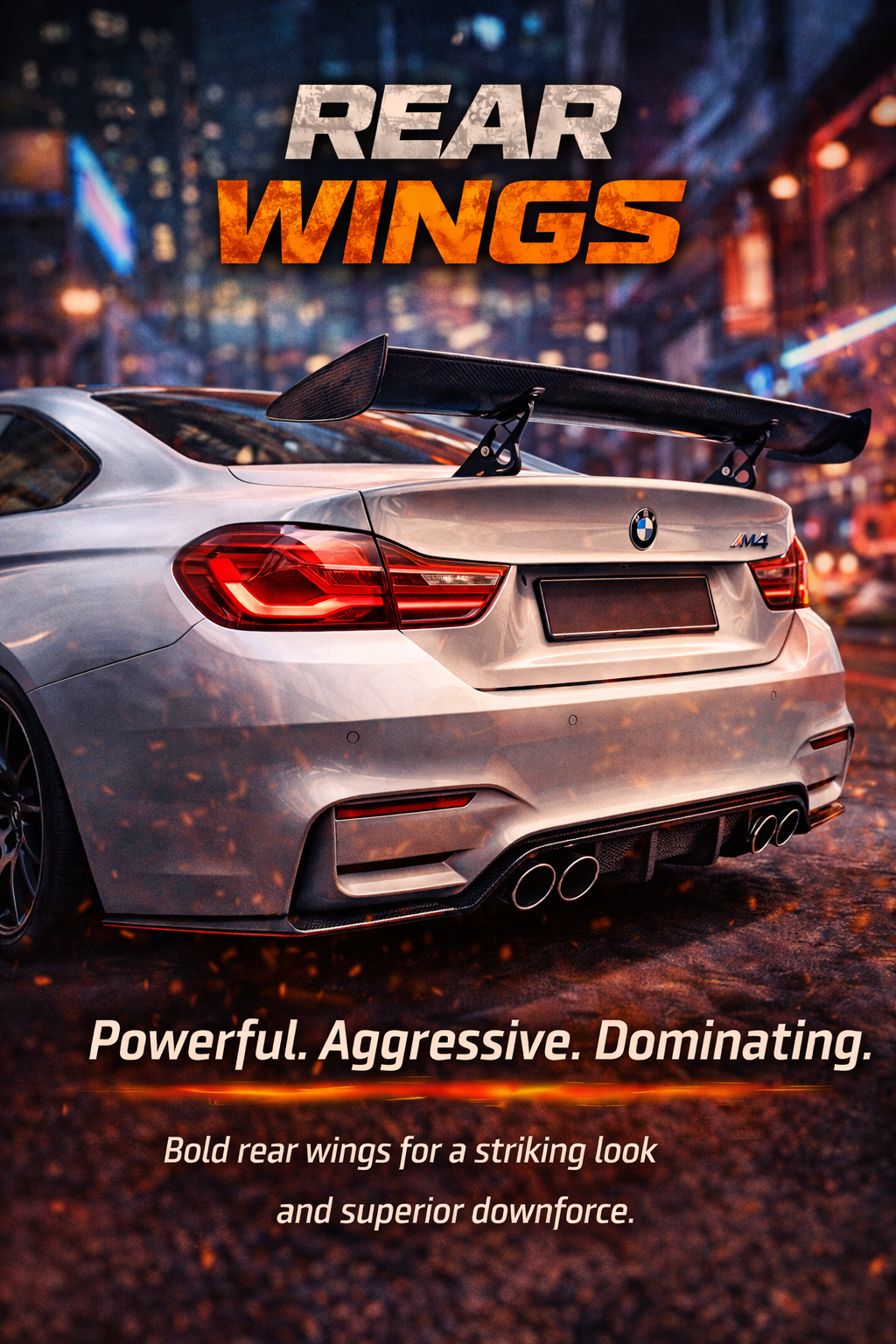 Bold rear wings designed to improve downforce and give your vehicle a...